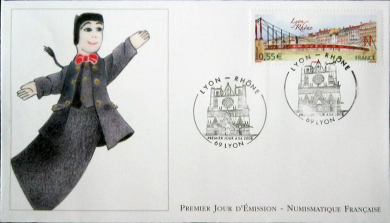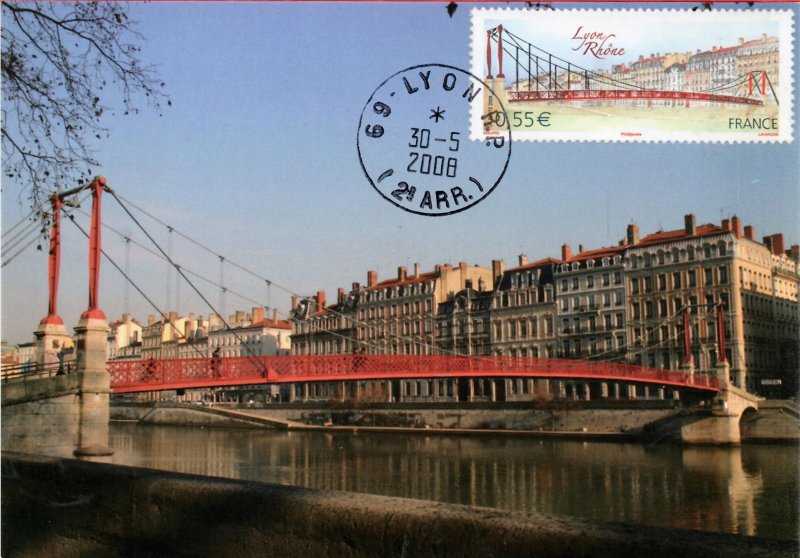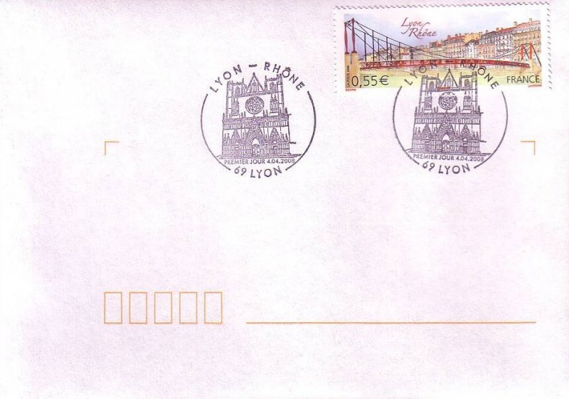 | Commentaire | La manifestation premier jour a lieu du 4 au 6 avril au palais des congrès de Lyon, pendant le Salon de printemps de la CNEP. Louis Arquer a dessiné la façade de la cathédrale Saint-Jean sur le cachet premier jour. Quand on se rapproche des quais, l’ambiance urbaine change totalement. La perspective s’ouvre, s’élargit. On se trouve soudain devant le déroulement d’une scène architecturale dont le décor épouse les courbes et les méandres du fleuve. Une architecture paisible s’étale le long des quais de la Saône et se déroule avec lenteur au rythme de la rivière. Elle apporte au promeneur des points de vue superbes. Tout semble être à sa place, depuis toujours : L’eau coule et les maisons regardent l’eau couler. Les maisons hautes, les façades plates où les ornementations sont réduites au minimum, le dégradé des couleurs et des enduits ocre et pastel, la balance subtile des pleins et des vides, qui jouent avec le ciel et la lumière. Les silhouettes des bâtiments de cinq ou six étages, qui se répondent de part et d’autre des quais, donnent à la Saône un effet de rue |