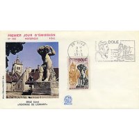 | Commentaire | Visuel : sous l'énorme clocher carré de la basilique Notre-Dame, majestueux édifice de style flamboyant, la charmante Place- aux-Fleurs, construite en terrasse : toute la ville accroche en effet ses maisons sur les flancs d'une colline dominant le Doubs et le canal du Rhône au Rhin. Du pied de cette jolie Fontaine de "l'Enfant à l'amphore" (1805), œuvre du Jurassien François- Marie Rosset (1743-1824, peintre et sculpteur), on découvre une vue caractéristique sur les demeures anciennes et les grands toits de tuiles rousses, qui donnent tant de cachet et tant de charme à cette riche et pittoresque cité comtoise. |