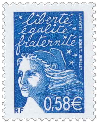 | Commentaire | Les timbres imprimés en 2001, l'ont été en feuilles monobloc de 100 (impression TD6), c'est-à-dire sans pont, séparant la feuille en deux blocs de 50TP (impression RGR), portent dans la marge supérieure la mention : « Timbres en euros mise en vente à partir du 1er janvier2002 ». Le timbre se collectionne soit en haut de feuille complète, soit en séparé avec bord de feuille attenant. Description synthétique du visuel du timbre : En janvier 2002, 15 nouvelles Marianne du 14 juillet seront émises en simple affichage euro. Le TVP, sans affichage de la valeur, est émis plus tôt (août 2001). La nouvelle série émise correspond aux : 8 pièces en euro : 0,01 € - 0,02 € - 0,05 € - 0,10 € - 0,20 € - 0,50 € - 1,00 € - 2,00 € 1er, 2e et 3e échelon de poids de la lettre zone 1, service prioritaire : TVP / 0,69 € (= 4,50 F) / 1,02 € (= 6,70 F) 1er, 2e et 3e échelon de poids de la lettre zone 1, service écopli : 0,41 € (= 2,70 F) / 0,53 € (= 3,50 F) / 0,64 € (= 4,20 F) 1er échelon de la zone 2 et 4, service prioritaire : 0,58 € (= 3,80 F) / 0,67 € (= 4,40 F). Existe avec bandes phosphorescentes à cheval ou brisées aux cases 1, 2, 99 et 100 |