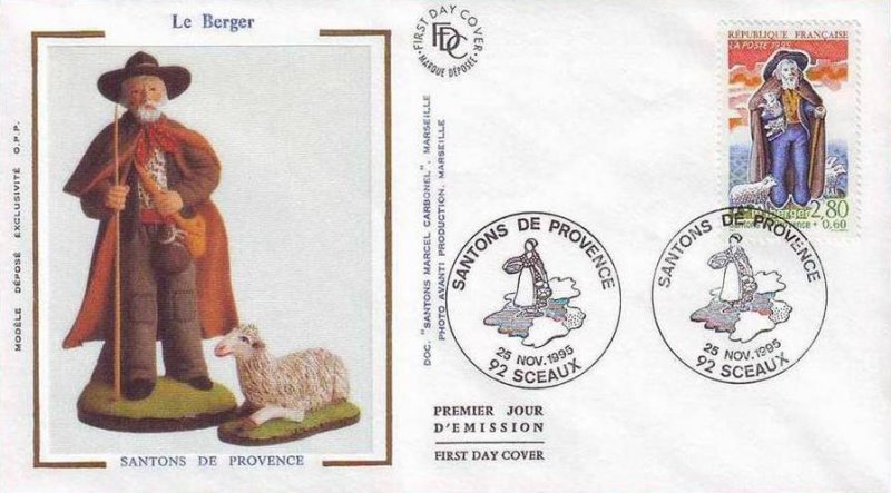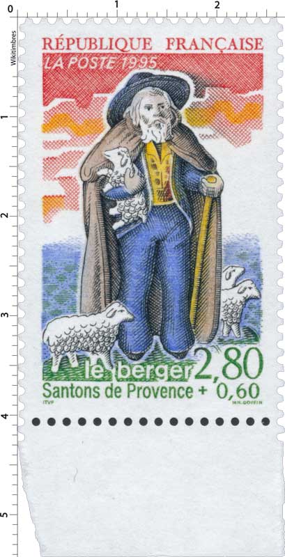 | Description | Les santons de Provence, Le berger (provenant d'une feuille de 50 TP) |