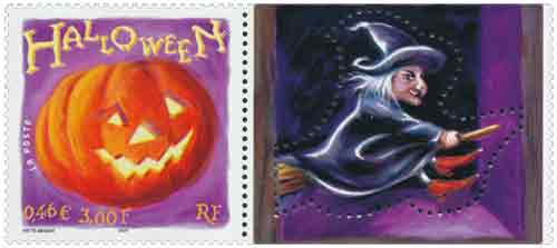 | Description | Halloween. A l'occasion de la fête d'Halloween, représentation d'unecitrouille. Timbre phosphorescent. |