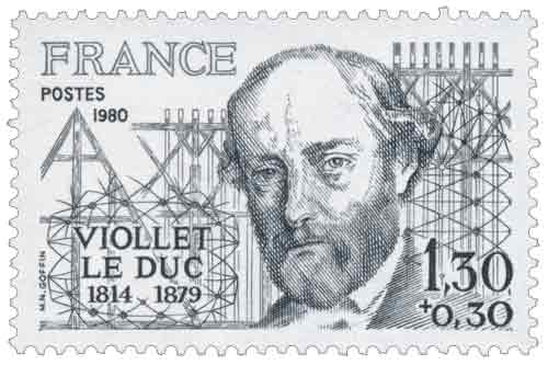 | Commentaire | Visuel : l'architecte Eugène Viollet-le-Duc, le plan de la cathédrale St-Julien du Mans et la charpente de l'église Saint Ouen à Rouen. Eugène-Emmanuel Viollet-le-Duc, né à Paris, avait 17 ans lorsque Victor Hugo publiait "Notre-Dame de Paris". Ce roman, qui mettait le Moyen-âge à la mode, décida sans doute de la vocation de celui qui fut, durant cinquante ans, le restaurateur de notre patrimoine national. Ce timbre commémore le centenaire de la disparition d’Eugène-Emmanuel Viollet-le-Duc, architecte et théoricien majeur du XIXe siècle, dont l’action a profondément marqué la connaissance et la conservation du patrimoine médiéval français. Né à Paris en 1814, Viollet-le-Duc s’impose très tôt comme une figure centrale de la restauration monumentale, dans un contexte où l’intérêt pour le Moyen Âge est ravivé par les courants romantiques et par la prise de conscience progressive de la nécessité de sauvegarder les édifices anciens. Soutenu par Prosper Mérimée, alors inspecteur général des Monuments historiques, il intervient sur des chantiers emblématiques qui structurent durablement le paysage patrimonial français, notamment à Vézelay, Notre-Dame de Paris, Saint-Denis, Carcassonne ou encore Pierrefonds. Ce timbre renvoie à cette double dimension de praticien et de penseur, Viollet-le-Duc n’ayant jamais dissocié la restauration de la réflexion théorique sur l’architecture. Ses écrits, en particulier les Entretiens sur l’architecture et le Dictionnaire raisonné de l’architecture française du XIe au XVIe siècle, influencent durablement l’enseignement et annoncent certaines orientations de l’architecture moderne, notamment par l’attention portée à la structure et à la rationalité constructive. L’émission de 1980 s’inscrit dans une politique postale française attentive aux grandes figures culturelles et scientifiques, tout en associant cette commémoration à une surtaxe au profit de la Croix-Rouge française, pratique alors courante pour certains timbres à vocation mémorielle. Ce timbre rappelle ainsi le rôle déterminant de Viollet-le-Duc dans la constitution d’une conscience patrimoniale nationale, tout en soulignant la complexité d’une œuvre qui continue d’alimenter débats et analyses historiques. Article rédigé pour WikiTimbres |