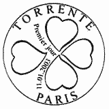 | Commentaire | Description synthétique du visuel du timbre : La mini feuille se compose de 5 timbres cœur Torrente rouge positionnés en tourbillon sur un fond illustré par un des modèles de robe créée par Torrente. Timbre sans millésime |