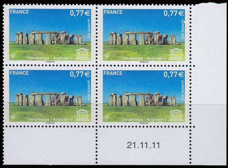 | Commentaire | Émission en planche de 10 bandes de 5 TP Stonehenge “les pierres suspendues” est un monument mégalithique situé dans le comté du Wiltshire en Angleterre. Érigé entre 2800 et 1100 avant J.-C. il est composé de structures circulaires concentriques. |
