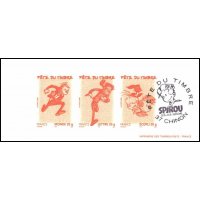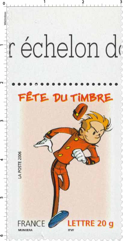 | Commentaire | Les timbres Spirou seront émis en 2006 dans la série « Fête du timbre » qui met à l’honneur les héros de bande dessinée depuis 1999. De 1938 à 1998, cet aventurier aux costume de groom a évolué sous la plume de Bob Vel, Jijé, Franquin, Fournier, Nic Broca, Chaland, Tome et Janry. Depuis 2004, Munuera pour le dessin et Morvan pour le scénario ont donné un nouveau souffle à Spirou. |