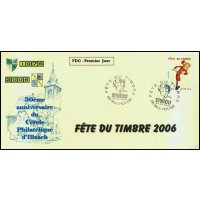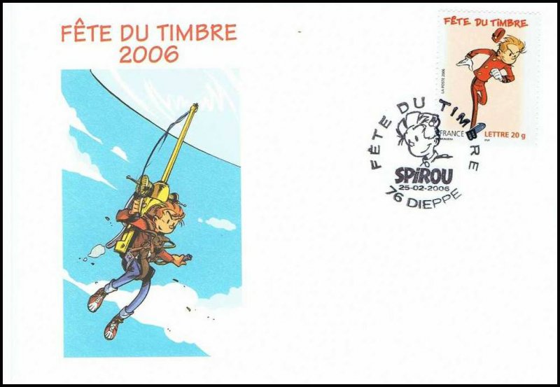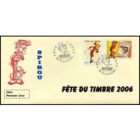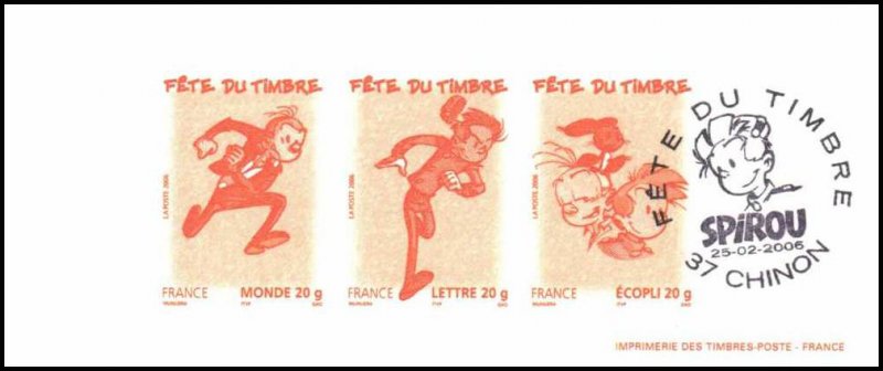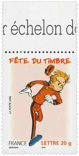 | Description | Fête du timbre 2006. Spirou, Fantasio et Spip l'écureuil, provenant d'une feuille de 48 TP |