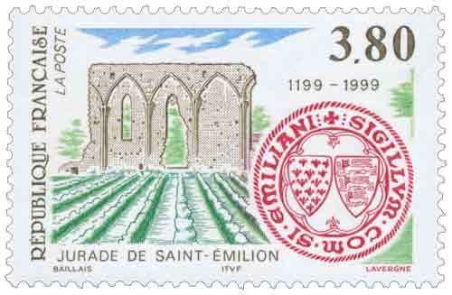 | Commentaire | Description synthétique du visuel du timbre : Le 8 juillet 1199, la “ Charte de Falaise ” est signée par Jean Sans Terre. Elle donne aux bourgeois de Saint-Emilion le pouvoir d’administrer leur commune et leurs vins. Ces pouvoirs étant d’un type juridique, la collectivité chargée de cette responsabilité et de cette gestion fut appelée Jurade, et ses magistrats des jurats. Aujourd’hui, elle est une émanation du Syndicat Viticole et n’a pas d’existence juridique propre. Le sceau d’origine figure sur le visuel, sur un fond représentant les vignes qui longent “ la Grande Muraille ”, ruines d’un ancien couvent de Frères prêcheurs ou Dominicains. |