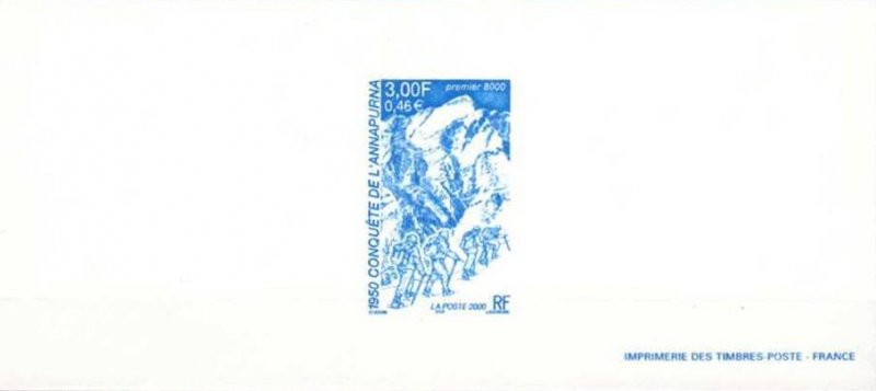 | Commentaire | Description synthétique du visuel du timbre : Maurice Herzog, né le 15 janvier 1919, à Lyon, dirigea l’expédition française qui partit à la conquête de l’Annapurna en 1950 et collabora ainsi à la promotion de l’alpinisme français. L’équipe se constituait de 9 alpinistes français et 8 sherpas. Le 03 juin 1950, Maurice Herzog et Louis Lachenal atteignaient le pic sommital. Le visuel met l’accent sur une cordée au premier plan, mise en scène sur un fond représentant le glacier la faucille et la face nord de l’Annapurna, dont le caractère abrupt, escarpé et austère est encore accentué par le format vertical du visuel. |