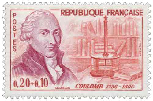 | Commentaire | Émis en 1961 avec surtaxe au profit de la Croix-Rouge française, le timbre consacré à Charles-Augustin de Coulomb honore l’un des grands fondateurs de la physique expérimentale moderne, né à Angoulême. D’abord ingénieur du génie militaire, Coulomb s’illustra par des travaux de construction avant d’orienter ses recherches vers la mécanique et la physique, dans l’esprit scientifique du XVIIIᵉ siècle. Entre 1784 et 1789, ses mémoires sur l’électricité et le magnétisme marquent une rupture décisive : grâce à la balance à torsion, instrument qu’il met au point et que le timbre représente explicitement, il parvient à mesurer des forces extrêmement faibles et démontre que les forces électriques et magnétiques obéissent à une loi en raison inverse du carré de la distance, désormais connue sous le nom de loi de Coulomb. Il établit également que les charges électriques se répartissent à la surface des conducteurs et étudie les phénomènes de déperdition de charge dans l’air. Ces résultats fondent une approche quantitative des phénomènes électriques, ouvrant la voie aux développements du XIXᵉ siècle. Par son sujet, ce timbre s’inscrit dans la série dédiée aux femmes et hommes de sciences et de techniques, associant commémoration savante et usage postal courant, la surtaxe rappelant l’engagement solidaire traditionnel de certaines émissions françaises. Article rédigé pour WikiTimbres. |