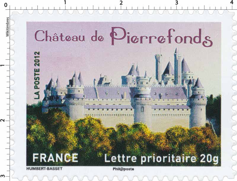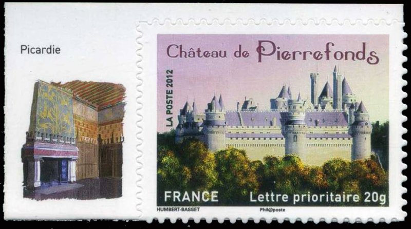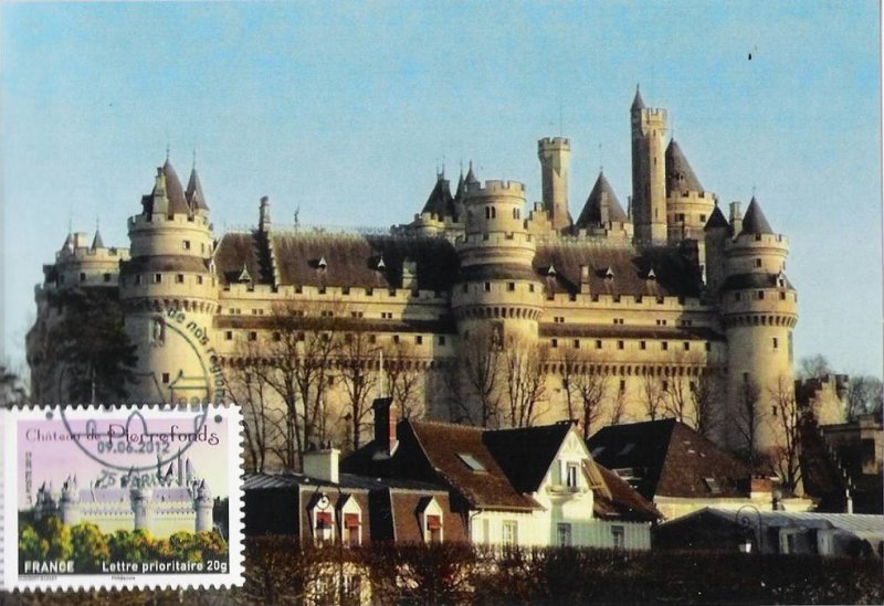 | Commentaire | Timbre à date “Premier Jour” conçu par Grenade. Émis lors du salon du timbre 2012 Nous voilà à présent près de Compiègne, pour apercevoir le château de Pierrefonds qui fut créé par le célèbre architecte du XIXème sicèel Viollet-le-Duc à partir de ruines moyenâgeuses. Sa forme frappante mélange les architectures de plusieurs siècles pour un résultat saisissant, presque féerique.