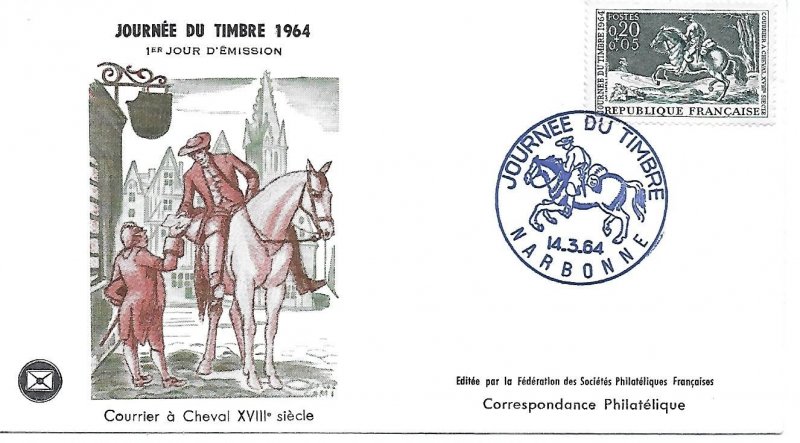 | Description | Journée du timbre 1964. Courrier à cheval - XVIIIe siècle |