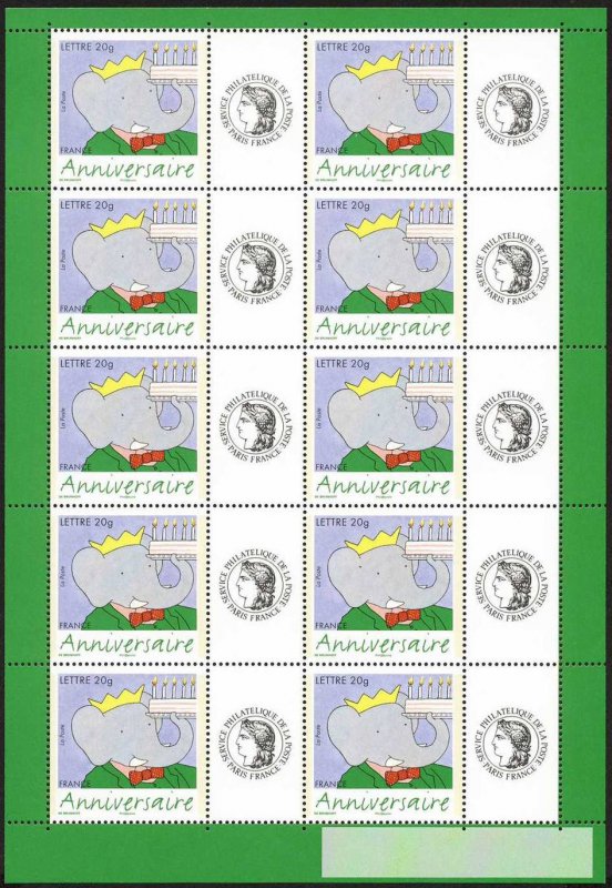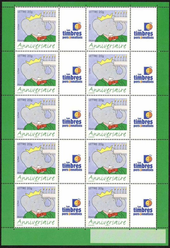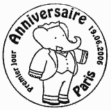 | Commentaire | En 2006, Babar fête ses 75 ans. Figure emblématique de la bande dessinée, créé par Jean de Brunhoff, puis repris par Laurent de Brunhoff, Babar incarne les valeurs fondamentales que sont la famille, la sagesse, le respect, l’écologie. Ce héros positif et aventureux est trans-générationnel et fait partie de la mémoire collective. Timbre sans millésime |
