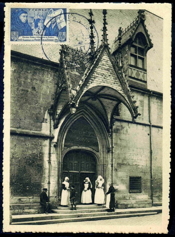 | Description | Nicolas Rolin (1376-1462), né à Autun, et Guigone de Salins d’après Rogier de la Pasture (Van der Weyden), et porche de l’Hôtel-Dieu |
