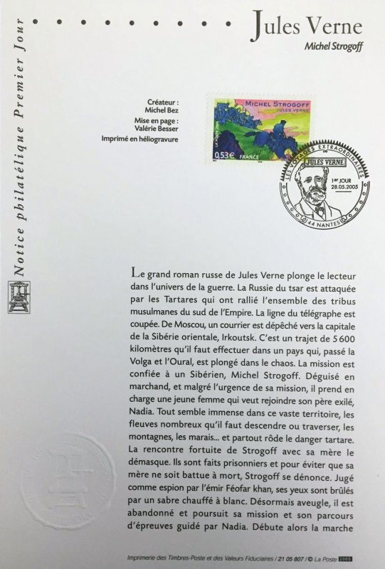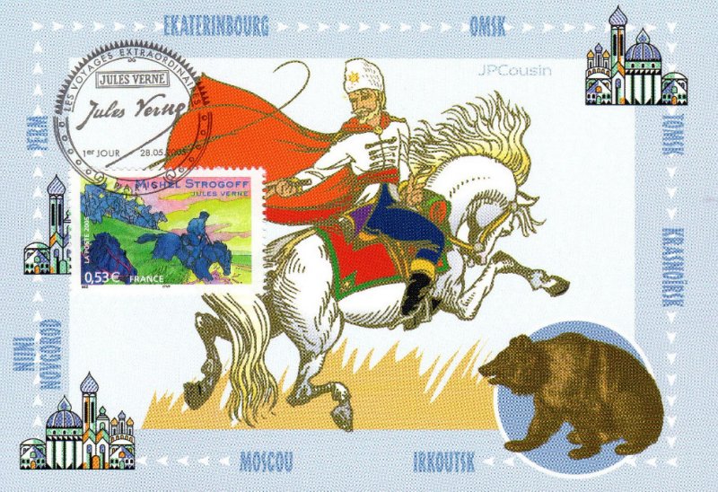 | Description | Michel Strogoff, de l'écrivain Jules Verne (1828-1905), né à Nantes (Loire-Atlantique), provenant d'une feuille de 50 TP |