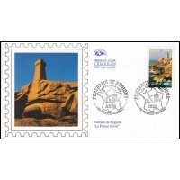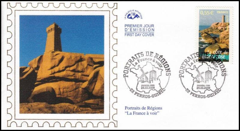 | Commentaire | BF117. Bloc de dix timbres de 0,55 euro La mise en vente anticipée du bloc a lieu dans plusieurs villes concernées par le sujet des timbres : Castelnaudary, Coulon, Honfleur, Paris, Perros-Guirec, Rigny-Ussé, Salazie, Sarlat-la-Canéda, Strasbourg et Vézelay. Le cachet premier jour représente une carte de la France métropolitaine sur laquelle figure un moulin et un clocher. |