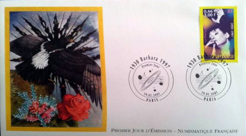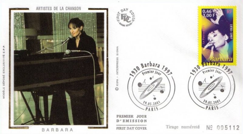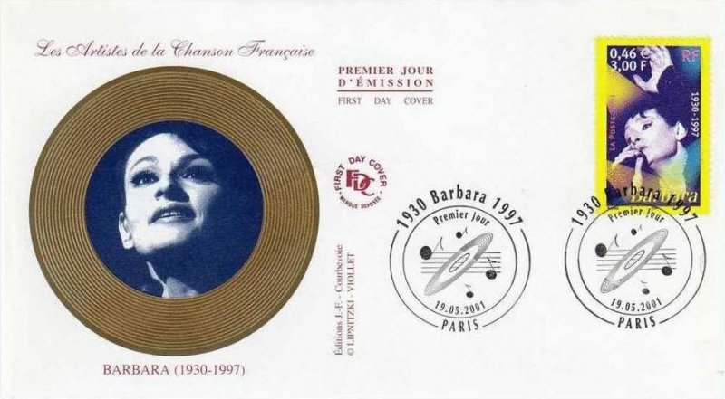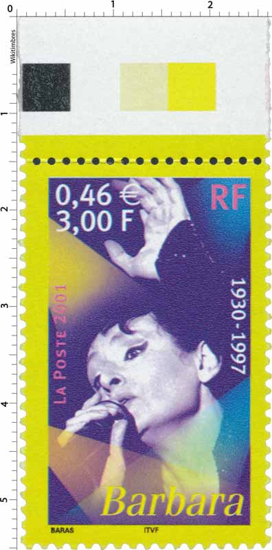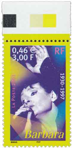 | Description | Barbara (1930-1997), née à Paris, provenant d'une feuille de 50 TP |