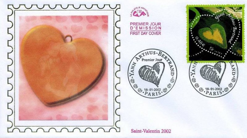| Description | Saint-Valentin. Cœur 2002, de Yann Arthus-Bertrand, né en 1946 à Paris. Illustré d'une photographie aérienne du « cœur de Voh », une formation naturelle de Nouvelle-Calédonie qui a la forme d'un cœur |