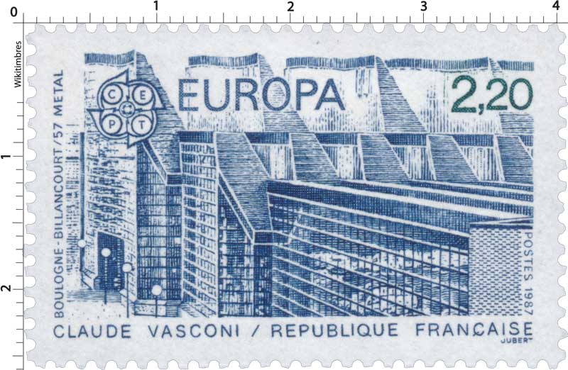 | Description | Architecture. Boulogne Billancourt par Claude Vasconi, né en 1940 à Rosheim en Alsace, représentation du bâtiment 57 métal de la Régie Renault à Billancourt |