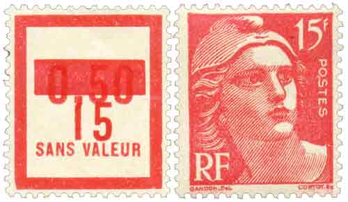 | Description | Rapprochement avec le timbre POSTE-1949-3 (fictif-1935-12 surchargé) |
