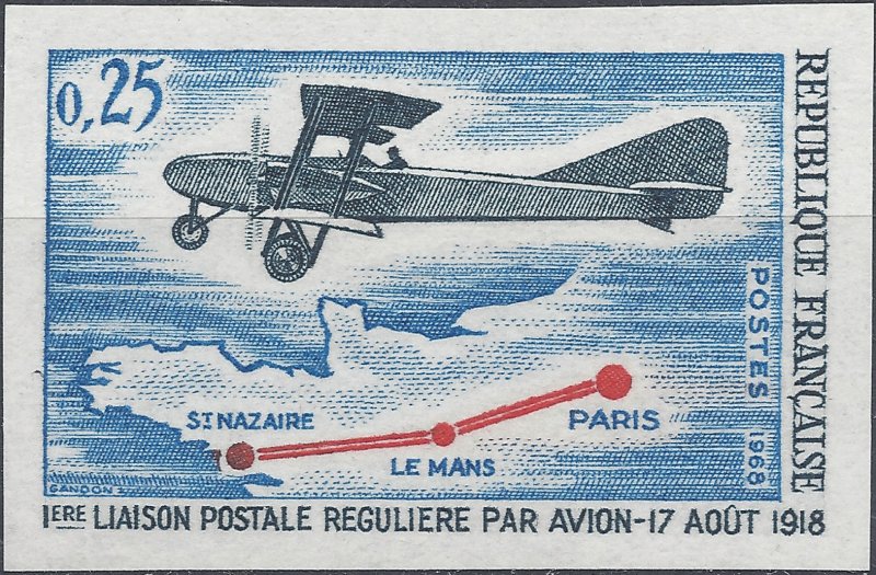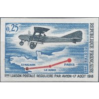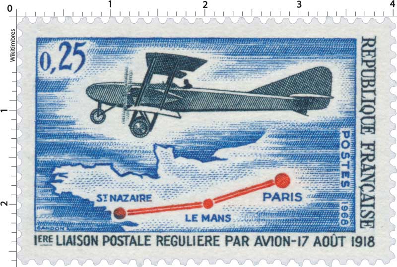 | Commentaire | Un jour d’août 1918, alors que la guerre broyait encore l’Europe, un avion quittait Paris, direction Saint-Nazaire. À son bord, pas des bombes, mais des lettres. C’était la toute première liaison postale régulière par avion en France. Un petit vol pour un Letord fatigué, un grand bond pour la Poste aérienne. Mais en réalité, l’idée n’était pas neuve. Dès 1913, un premier essai avait été tenté pour gagner du temps sur l’acheminement du courrier vers les Antilles. Succès technique, certes, mais vite rattrapé par la guerre. Ce n’est qu’en 1918 que le besoin se fait criant : avec les chemins de fer perturbés, il faut trouver un autre moyen pour acheminer rapidement le courrier, notamment vers les bases américaines. L’aviation devient la solution. Le 17 août, tout est prêt. M. Clémentel, ministre des Postes, inaugure la ligne Paris–Saint-Nazaire, avec une escale au Mans. L’avion ? Un vieux Letord double moteur, encore criblé de balles du front. À son bord : des courriers militaires bien sûr, mais aussi une centaine de lettres privées. Pour la première fois, elles arborent une étiquette rouge vive avec la mention “Par avion”. Le vol dure 2h45. À 15 h, décollage du Bourget, sous le regard curieux de quelques témoins. Et à l’extrémité de l’aile gauche, un fanion tricolore affiche fièrement "service postal". Poétique, non ? L’expérience, saluée, se prolonge jusqu’en juillet 1919, avec 158 rotations effectuées. En mars, les vieux avions sont remplacés par des Bréguet 14. Petit à petit, l’aérien s’impose. Et comme souvent, la guerre aura été, malgré elle, le déclencheur d’un progrès pérenne. WikiTimbres |