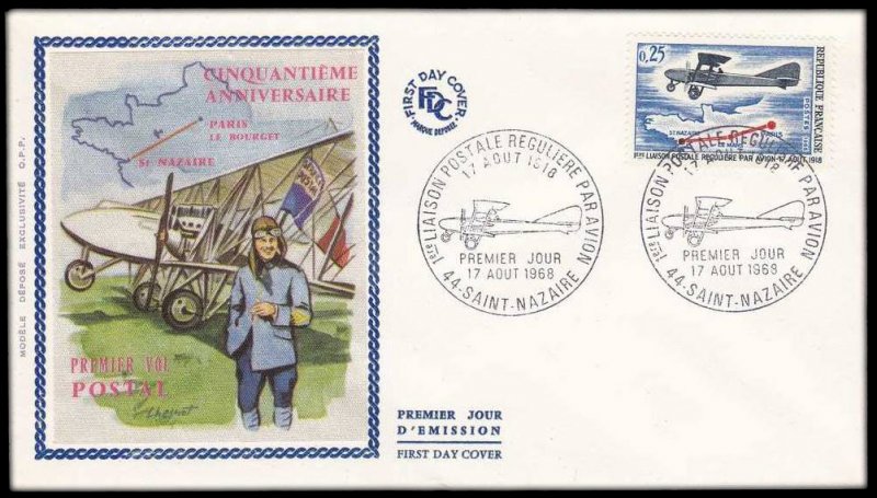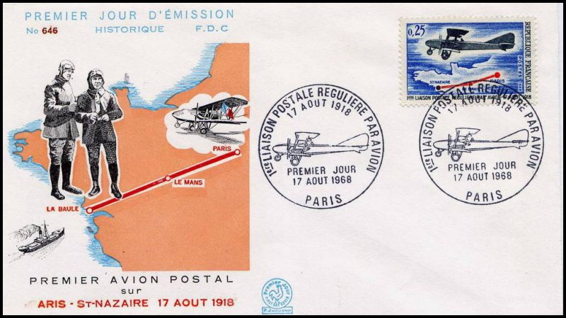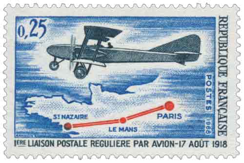 | Description | 50e anniversaire de la première liaison postale régulière par avion : Paris - Le Mans - Saint-Nazaire, le 17 août 1918 |