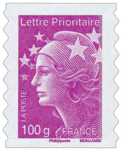| Commentaire | Existe également su papier gommé. Leur visuel évolue donc légèrement. Chaque timbre reçoit une mention “Ecopli”, “Lettre prioritaire”, “Monde” ou “Europe” en haut à gauche. Le poids autorisé s’inscrit en bas à gauche. La mention “France” bascule de gauche à droite. Les tarifs Ecopli 50 g et Europe 50 g disparaissent. La Marianne Ecopli 20 grammes abandonne sa couleur verte au profit d’un gris moyen. De plus, elle perd le fond de couleur du timbre pour faciliter sa reconnaissance par les machines de tri. Les Marianne de la monnaie (0,01 €, 0,05 €, 0,10 € et 1,00 €) sont inchangées et toujours disponibles. À partir du 1er juillet, ces nouvelles Marianne sont émises en planches, roulettes, carnets et planches autocollantes |