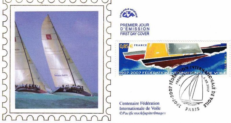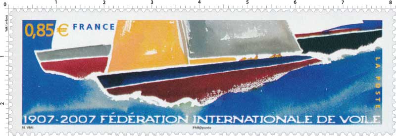 | Description | Centenaire de la Fédération Internationale de Voile (1907-2007), fondée à Paris et illustré par une œuvre de Nicolas Vial, né en 1955 à Paris |