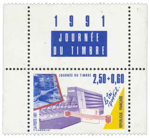 | Description | Journée du Timbre 1991. Les Métiers de la Poste - Le tri postal (provenant de carnet) |