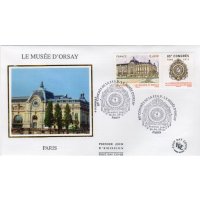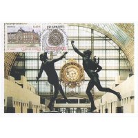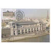 | Commentaire | Émis lors du salon du timbre 2012 C'est à l'occasion de l'Exposition universelle de 1900 que la Compagnie des chemins de fer d'Orléans et du Sud-ouest, acquiert l'emplacement des ruines du palais d'Orsay, pour y construire une gare. C'est le projet de l'architecte Victor Laloux qui est retenu par la Compagnie. L'édifice fait l'événement avec son architecture de transition entre classicisme et Art nouveau. Mais la gare s'avère incapable d'absorber la croissance du trafic et met fin à son activité en 1939. Elle devient alors un entrepôt, sert de plateau de cinéma, puis accueille le Théâtre d'Orsay Renaud-Barrault pendant plusieurs années, et ce n'est qu'en 1977, à l'initiative du Président Valéry Giscard d'Estaing, que la décision est prise d'y aménager un musée. Après plusieurs années de travaux, le musée est inauguré le 1er décembre 1986 par le président François Mitterrand. Toutes les formes d'expression artistique (peinture, sculpture, arts graphiques,…) sont exposées dans ce musée sur une période allant de 1848 à 1914. Le musée d'Orsay, récemment rénové, forme ainsi le lien entre le musée du Louvre et le musée d'Art moderne Georges Pompidou.