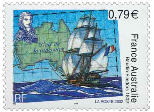 | Description | Émission conjointe avec l'Australie. Bicentenaire de la rencontre des deux navigateurs et explorateurs Matthew Flinders (1774-1814) et Nicolas Baudin (1754-1803), né à Saint-Martin-de-Ré (Charente-Maritime). Représentation de la Corvette Le Géographe |