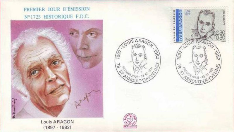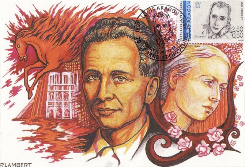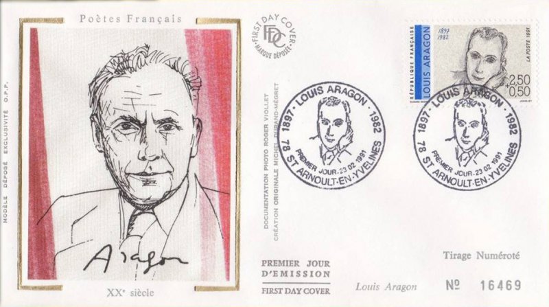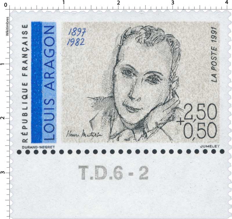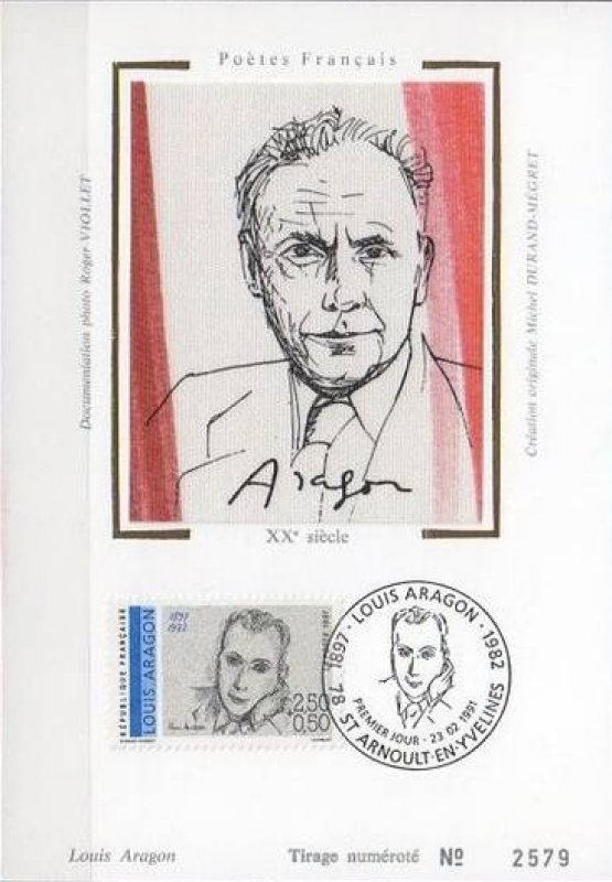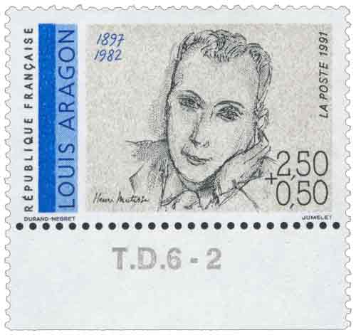| Description | Louis Aragon (1897-1982), écrivain , poète, romancier, journaliste et essayiste, né à Neuilly-sur-Seine, portrait d'Henri Matisse, issu d'une feuille de 50 TP |
