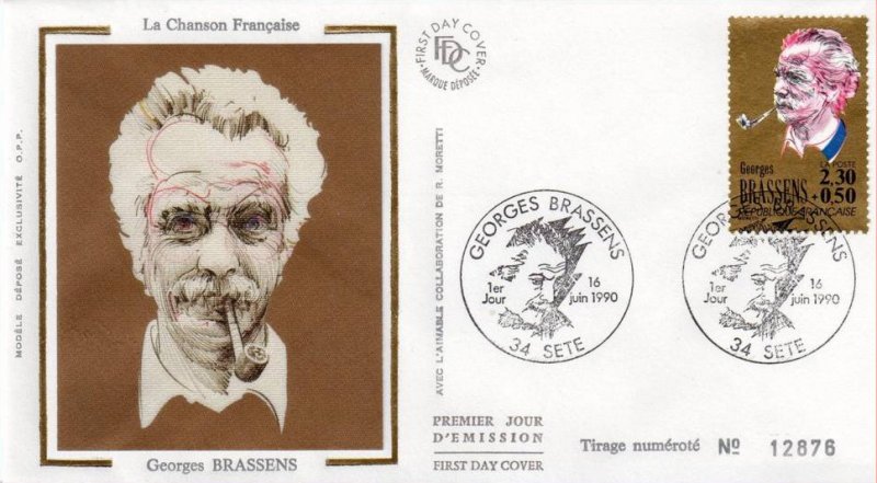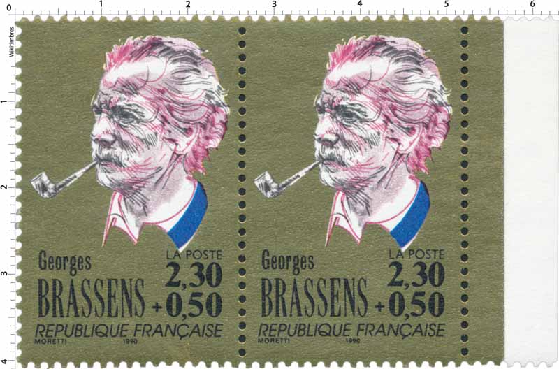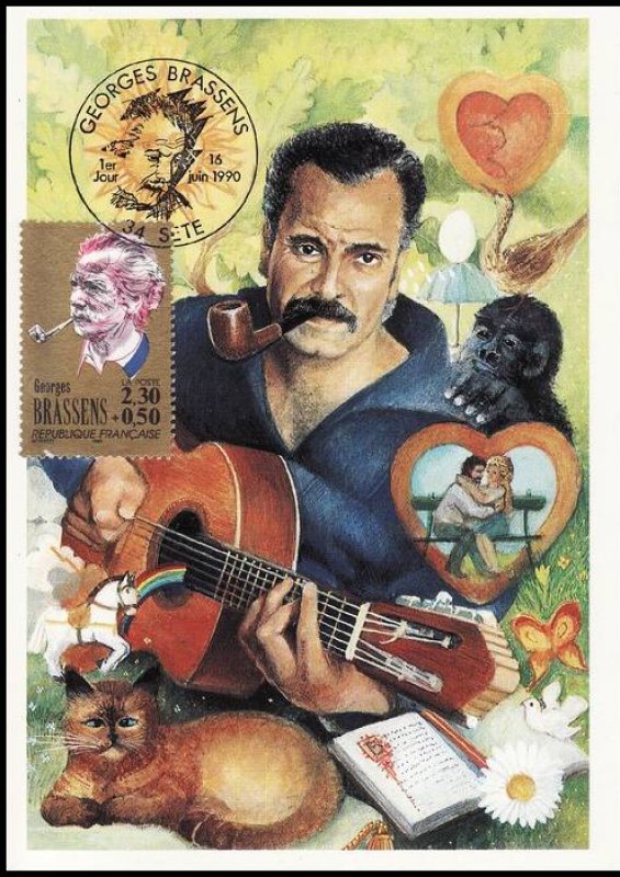 | Description | Georges Brassens (1921-1981), auteur, compositeur et interprète, né à Sète (provenant d'une feuille de 50 TP) |