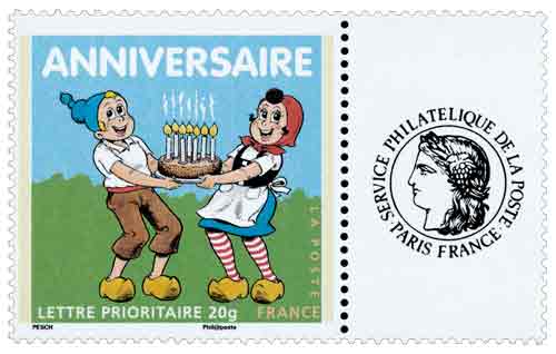 | Description | Timbre pour Anniversaires. Sylvain et Sylvette, héros de bandes dessinées de Jean-Louis Pesch. Type du T.-P. de même date |