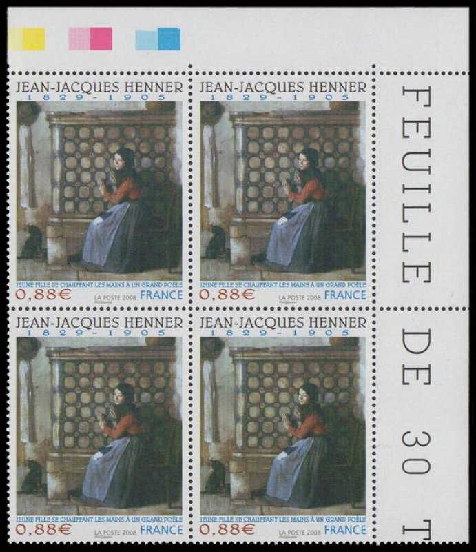 | Commentaire | Existe également en autoadhésif. Jean-Jacques Henner, 1829 – 1905, peintre français, eut son heure de succès avec des œuvres harmonieuses où dominent souvent le roux vénitien et un vert sourd mais de belle sonorité.. Fils de paysan alsacien, il s’exile à Paris lors de la grave crise économique de 1846-48. |