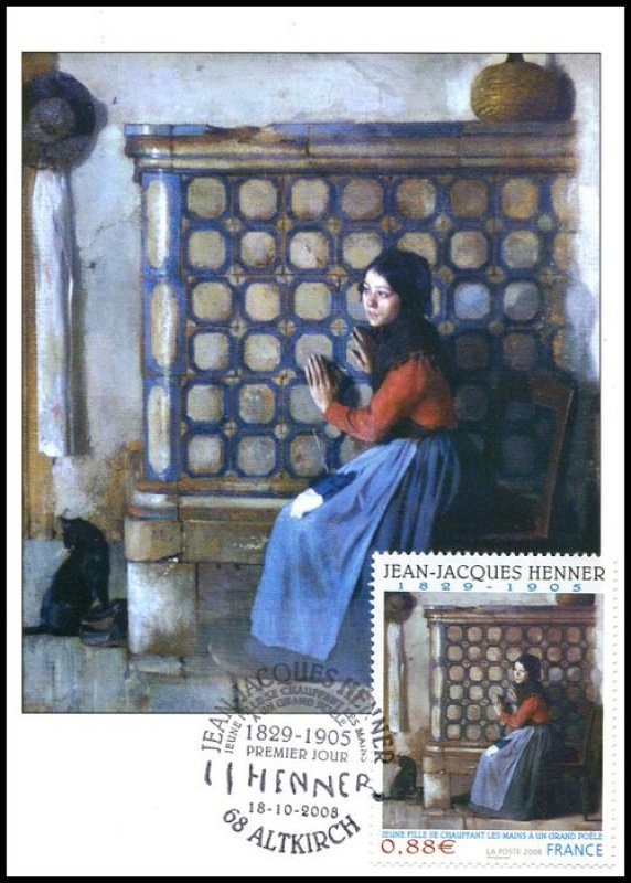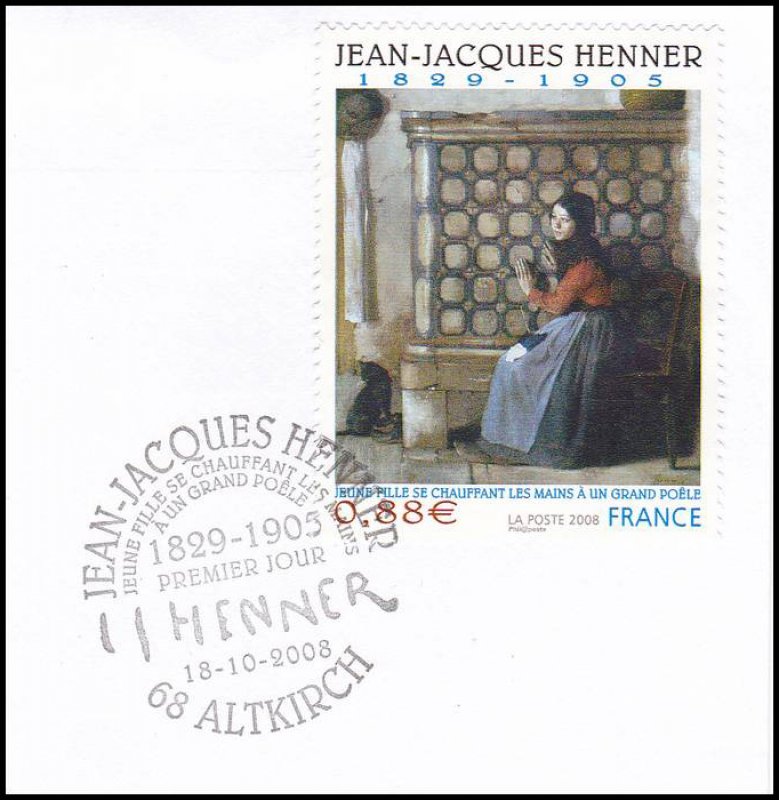 | Description | Jeune fille se chauffant les mains à un grand poêle, œuvre de Jean-Jacques Henner (1829-1905), peintre, né à Bernwiller (Haut-Rhin) |