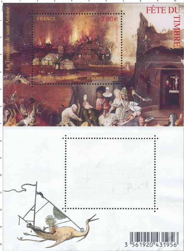 | Description | la fête du timbre 2012, mini-bloc du peintre néerlandais Hieronymus van Aken (Jérôme Bosch v.1453 - 1516) |