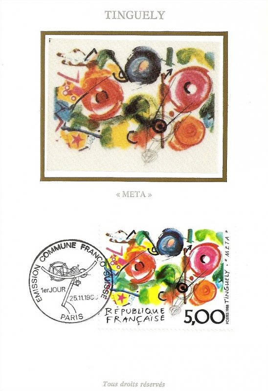 | Description | Émission conjointe franco-suisse. META œuvre de Tinguely (1925-1991), artiste suisse |