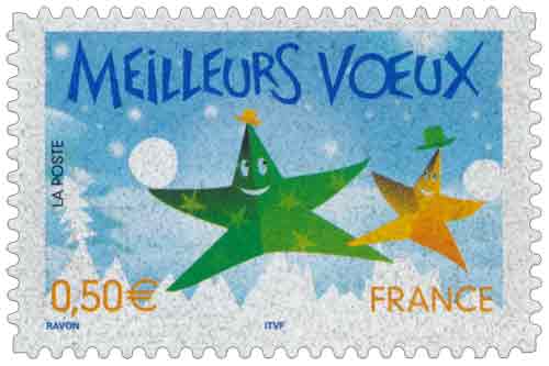 | Commentaire | Meilleurs vœux Émis en carnet, timbre auto-adhésif. Cette année, pour la première fois, le carnet Meilleurs vœux offre 5 visuels différents, chacun en double exemplaire. Timbre sans millésime |