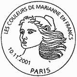 | Commentaire | Description synthétique du visuel du timbre : 2 blocs regroupant les Marianne du 14 juillet émises le 14 juillet et 15 septembre 1997 (15 figurines) seront mis en vente en décembre 2001 (plus 2 blocs en janvier 2002 présentant les 16 nouvelles Marianne du 14 juillet en euro). Un montage technique innovant réalisé sur les rotatives Taille-douce (3 encriers compartimenté en 3) permettant l’usage de 9 couleurs nous autorise à positionner jusqu’à 8 timbres de couleur différente par bloc ainsi qu’un texte dans une 9e couleur. Le 1er bloc décline les 7 figurines portant les valeurs de la monnaie (0,10 F / 0,20 F / 0,50 F / 1,00 F / 2,00 F / 5,00 F / 10,00 F) et le second les 8 figurines des valeurs de la lettre (2,70 F / TVP / 3,50 F / 3,80 F / 4,20 F / 4,40 F / 4,50 F 6,70 F). Tous les timbres du bloc sont au type II |