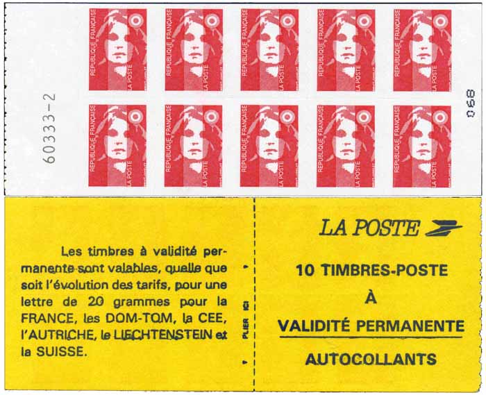 | Commentaire | Carnet à plat de guichet En savoir plus sur Wikipédia : Marianne du Bicentenaire |