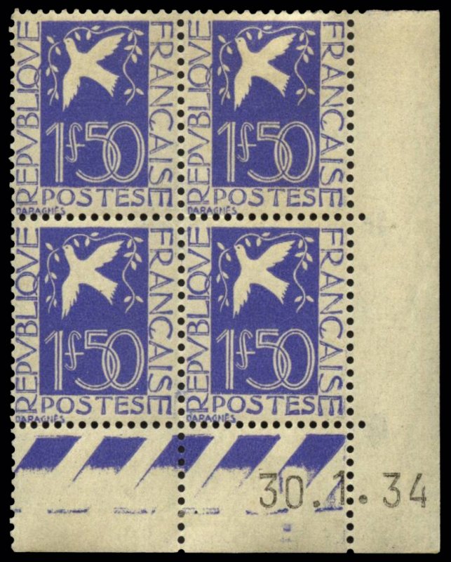 | Commentaire | Colombe de la paix. Émis le 20 février 1934, ce timbre d’usage courant marque l’une des rares incursions de Jean-Gabriel Daragnès dans la philatélie française. Artiste reconnu pour son burin sur bois et son illustration bibliophilique, Daragnès conçoit ici une composition d’une grande sobriété : une colombe stylisée, symbole universel de paix, occupant toute la vignette dans un équilibre très graphique. Particularités philatéliques