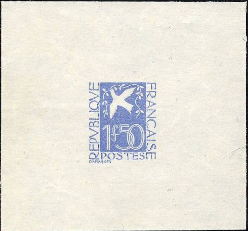 Imprimé en typographie, le timbre se distingue par un rendu de lignes très net et une absence de modelé, choix conforme au style épuré de Daragnès. L’outremer est souvent profond mais varie sensiblement d’un tirage à l’autre, du bleu sombre presque violacé à un outremer plus clair. |