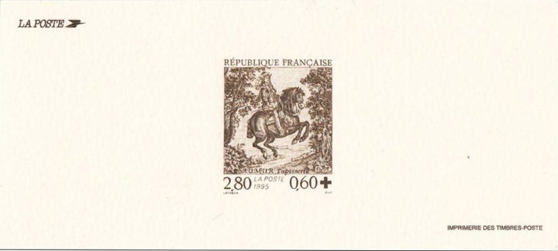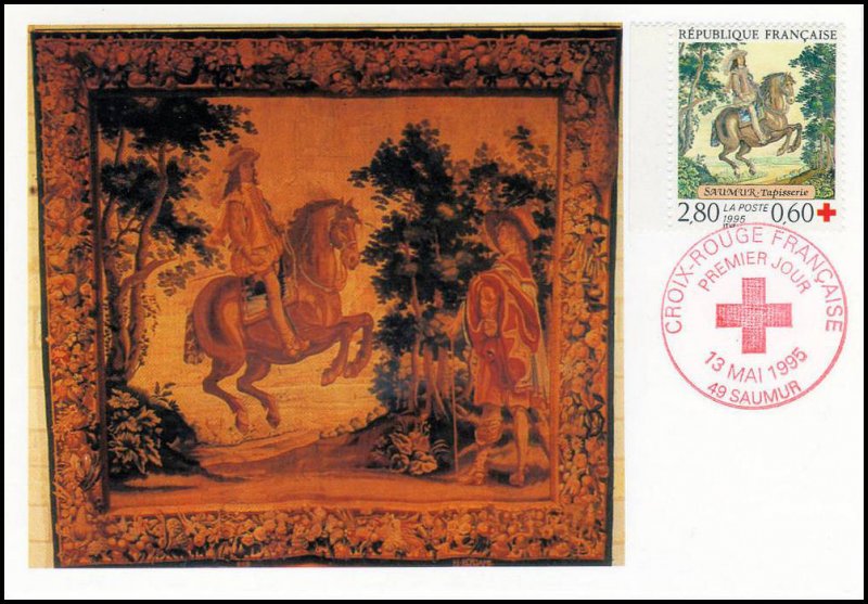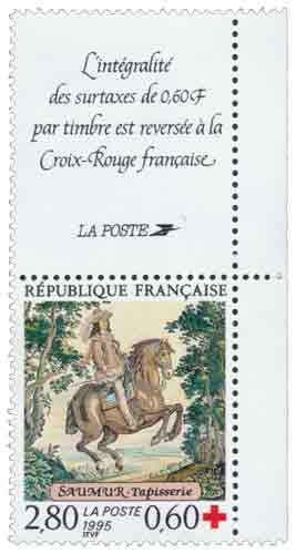 | Description | Au profit de la Croix-Rouge française. Tapisserie de Saumur, représentation de Louis XIII à cheval dans un décor rural (issu du carnet) |