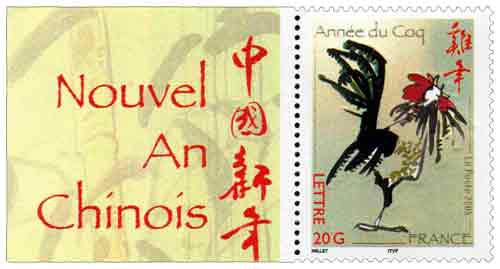 | Description | Nouvel An chinois : Année du coq. Premier timbre de l'émission annuelle sur le Nouvel An chinois. Provenant de la mini feuille de 10 TP |