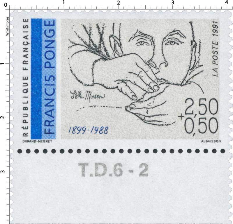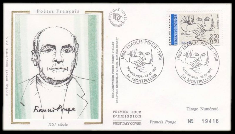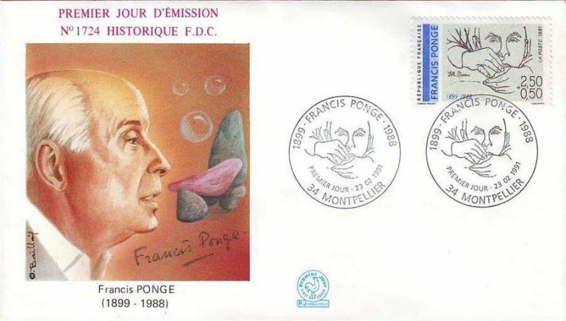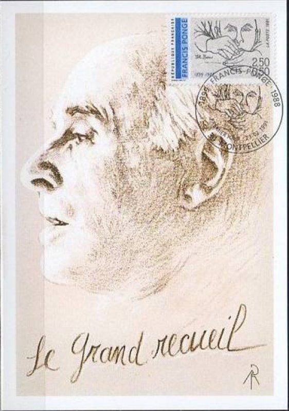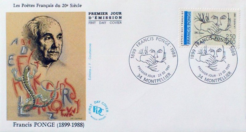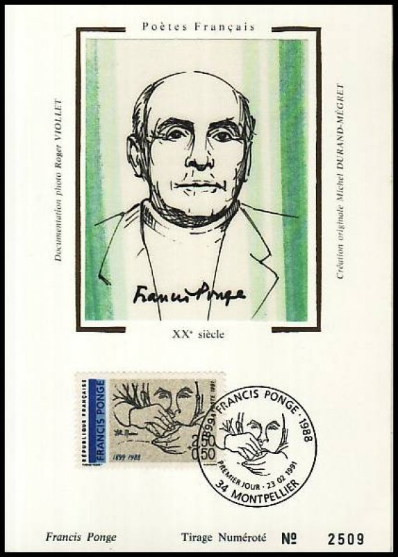 | Description | Francis Ponge (1899-1988), poète, né à Montpellier, portrait de Stella Mertens, issu d'une feuille de 50 TP |