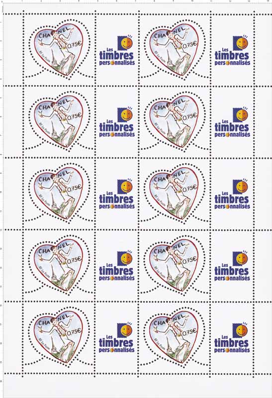 | Description | Saint-Valentin. Cœurs 2004 du couturier Karl Lagerfeld. Type des T.-P. de même date. Avec vignette Les timbres personnalisés |