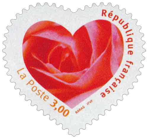 | Description | Timbres de souhaits. Timbres de Saint-Valentin Cœur avec détail d'une rose. Carnet. Adhésif. |