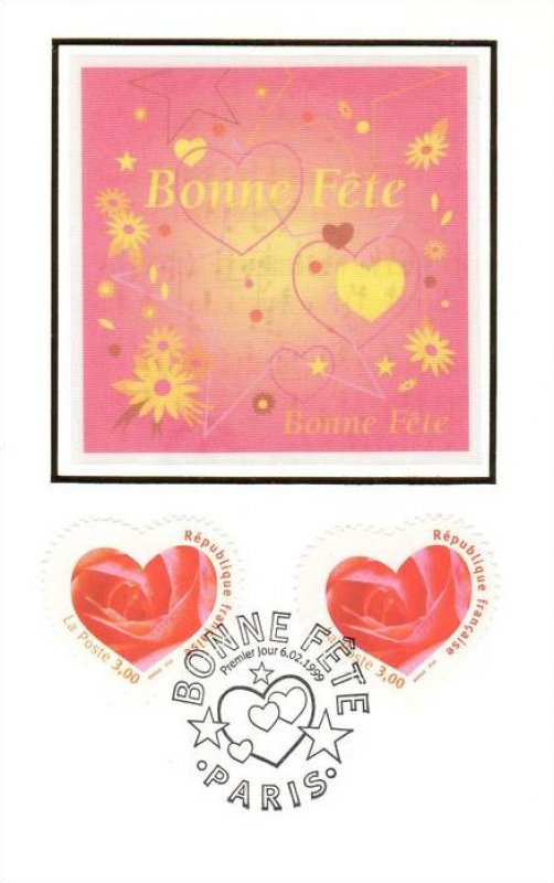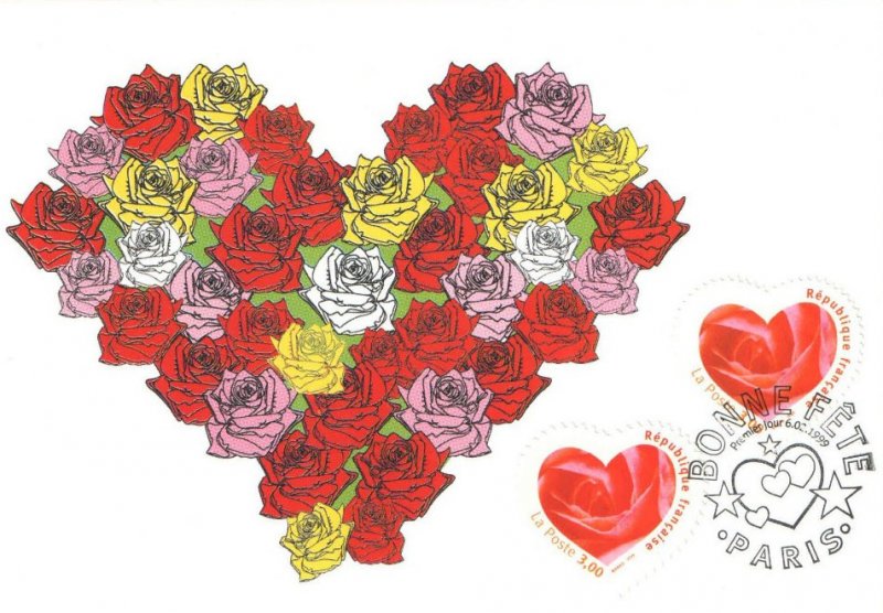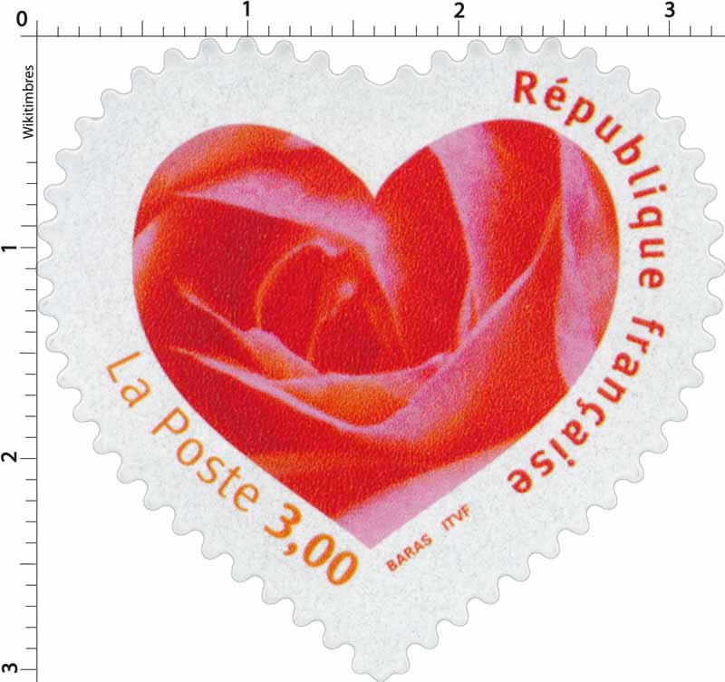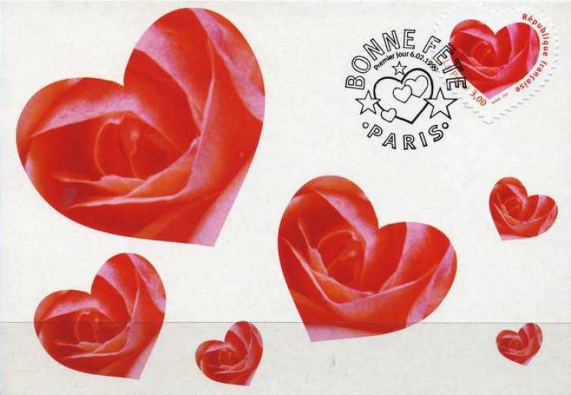 | Description | Timbres de souhaits. Timbres de Saint-Valentin Cœur avec détail d'une rose. Carnet. Adhésif. |