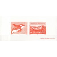 | Commentaire | Description synthétique du visuel du timbre : Les 4 animaux retenus évoluent dans une scène aquatique offrant la vision d’un océan et de son fond sous-marin. Des éléments divers, caractéristiques de cet environnement, animent la composition : corail, méduse, poissons, anémone de mer, algues. Sont mis en scène : une tortue luth, dont la carapace allongée est dépourvue d’écailles, un orque, le plus grand des cétacées, un grand dauphin au corps assez élancé et museau épais relativement court, et un phoque veau marin au corps et tête arrondis. |