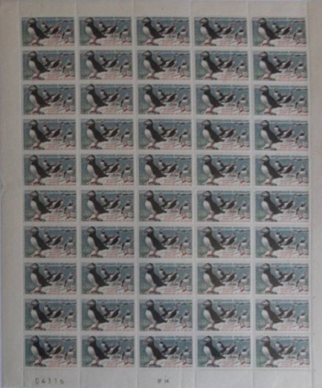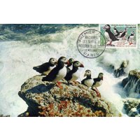 | Commentaire | Visuel : des Macareux moines (ou "perroquet de mer") , oiseau marin pélagique Nord-Atlantique, vivant en haute-mer, sauf au moment de la reproduction sur la terre ferme, où il niche sur les îles. Il a la taille d'un pigeon et une silhouette arrondie. Il est facilement identifiable, par sa marche en position verticale et ses couleurs vives. Ses pattes courtes et palmées, sont rouges en été, et virent au jaune en hiver. Son bec est rouge, avec une base bleu foncé, entourée de jaune. |